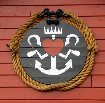 Handwerkszeichen der Tau- und Seilmacher für die Segelschifffahrt. Die schweren Trosse, hergestellt aus Faserhanf, wurden in Bahnen gelegt, dann gedreht und geteert. Für diese Bahnen wurden lange und gerade Straßen benötigt (in HH bspw. die Reeperbahn). |